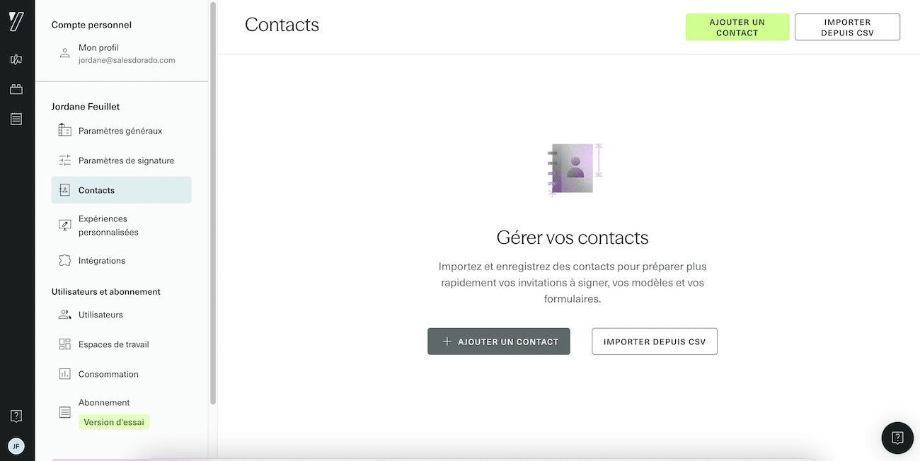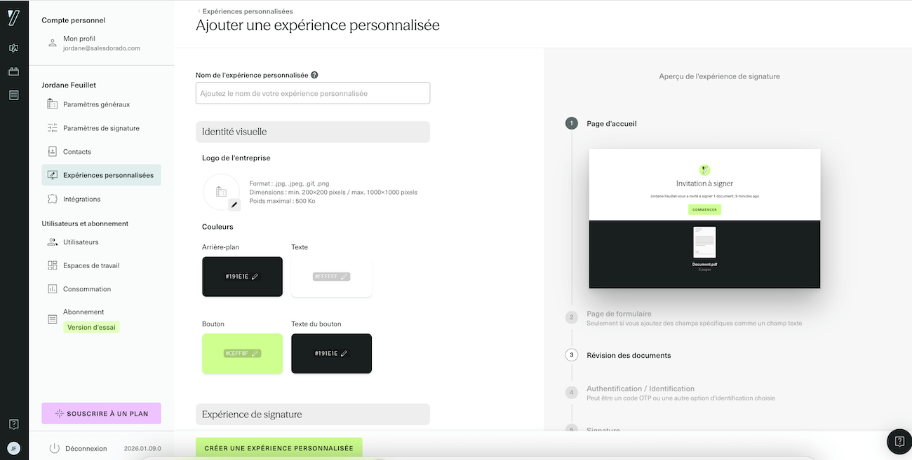 Yousign propose un essai gratuit de 14 jours sans carte bancaire. De quoi tester l’interface et vérifier que l’outil correspond à vos besoins avant de vous engager.