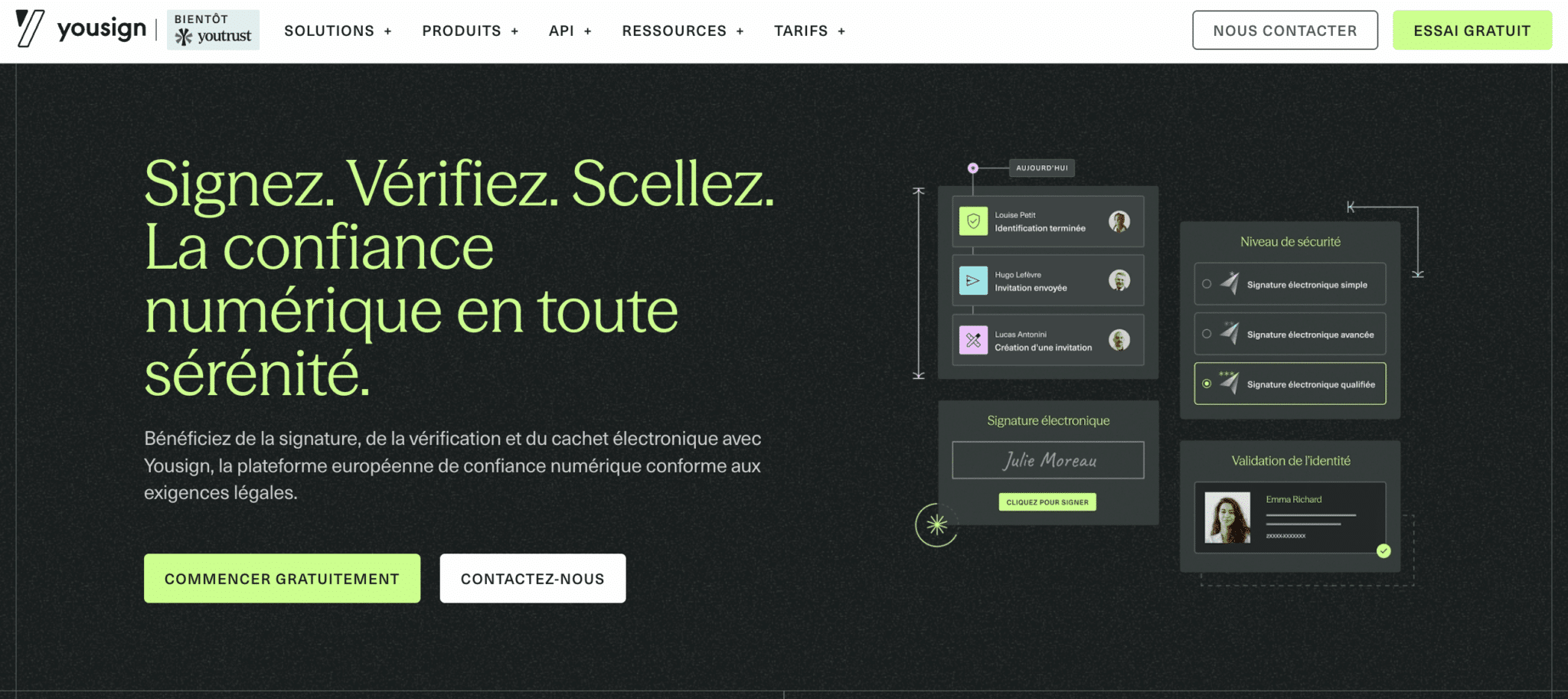 L’entreprise est en train d’opérer une transition stratégique vers la marque “Youtrust” (prévue pour 2026). L’idée : passer d’un simple outil de signature à une plateforme de confiance numérique intégrant trois briques : Signer (Sign), Vérifier l’identité (Verify) et Sceller les documents (Seal). Une évolution logique face à la montée de la fraude documentaire.