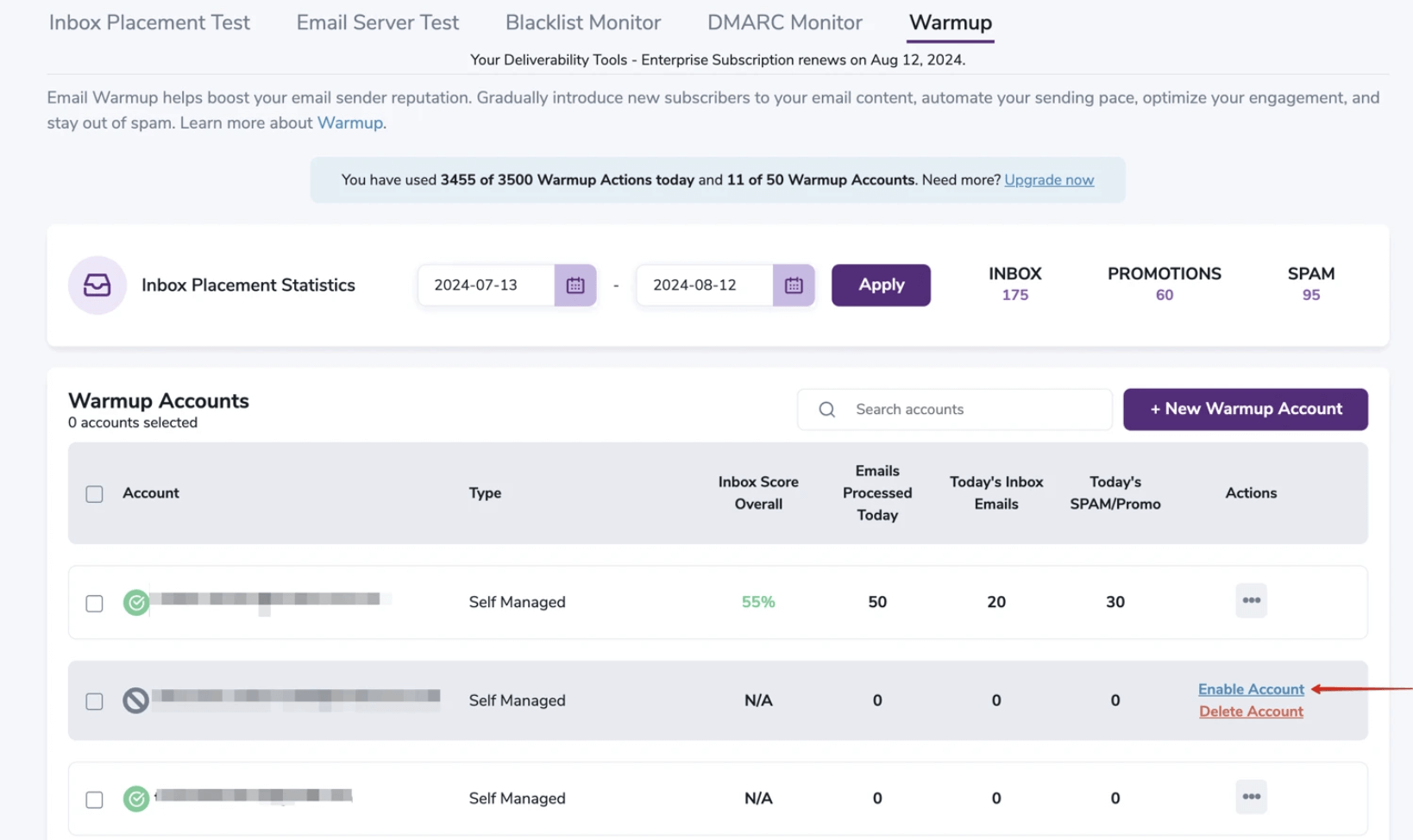 - Full access to deliverability tools (Blacklist Monitor, Inbox Test, Warmup, etc.)