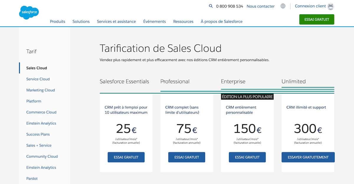 The commercial CRM with the highest adoption rates | From €19 / user / month | Salesforce Marketing Cloud |