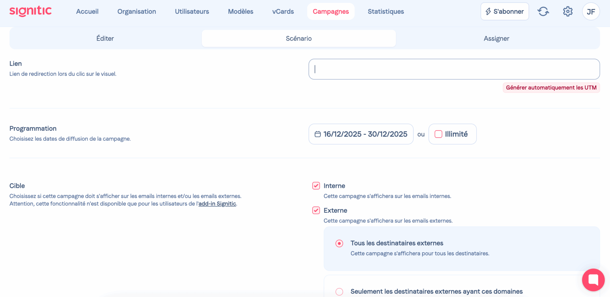 This is where Signitic differentiates itself from pure IT solutions. Each signature can include a clickable banner, and these banners can be managed like real marketing campaigns.
