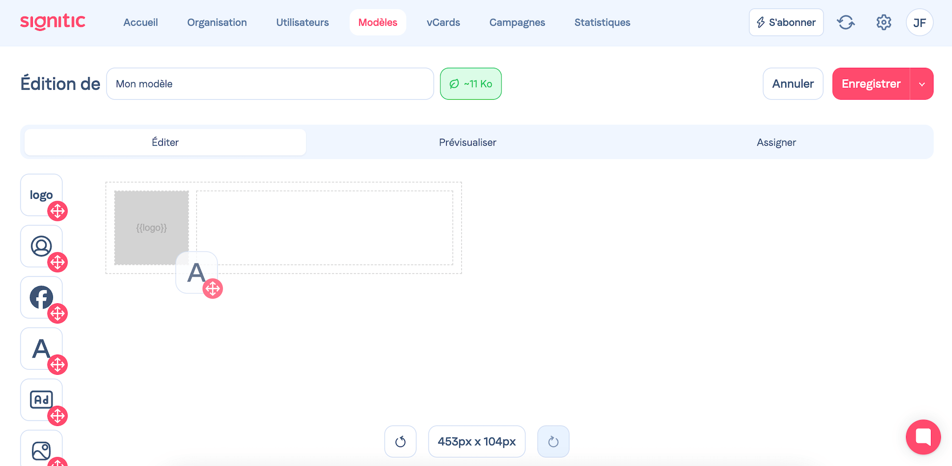 This is the heart of this email signature management tool. Signitic features a drag-and-drop editor accessible to non-technical users: you drag and drop blocks (text, images, social networks, buttons) to build your signature.