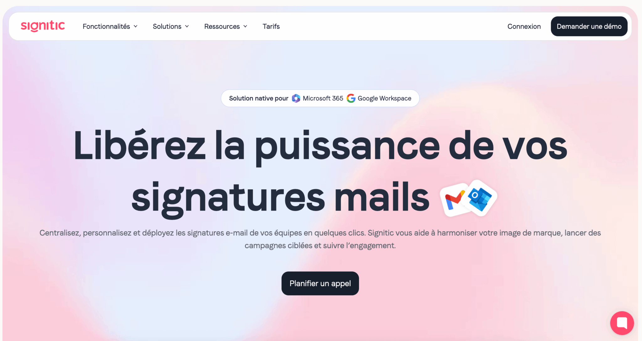 - The price that breaks the market: €1/user/month with all functionalities included (banners, campaigns, analytics, Canva…). Where Exclaimer or Letsignit charge 3 to 5€, Signitic divides the bill by 3 or 4. For a company of 100 people, that’s €1,200/year instead of €4,000-5,000.