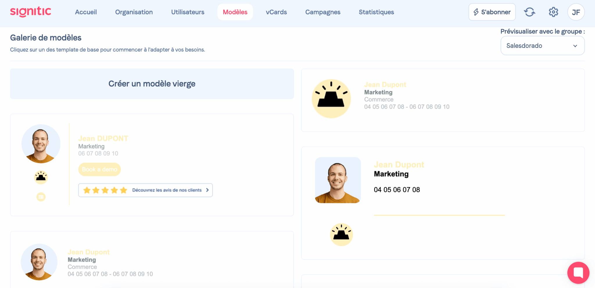 | Free | 0 € | Up to 19 users, 1 signature template, Signitic badge required, stats history limited to 7 days | VSEs, startups, tests |