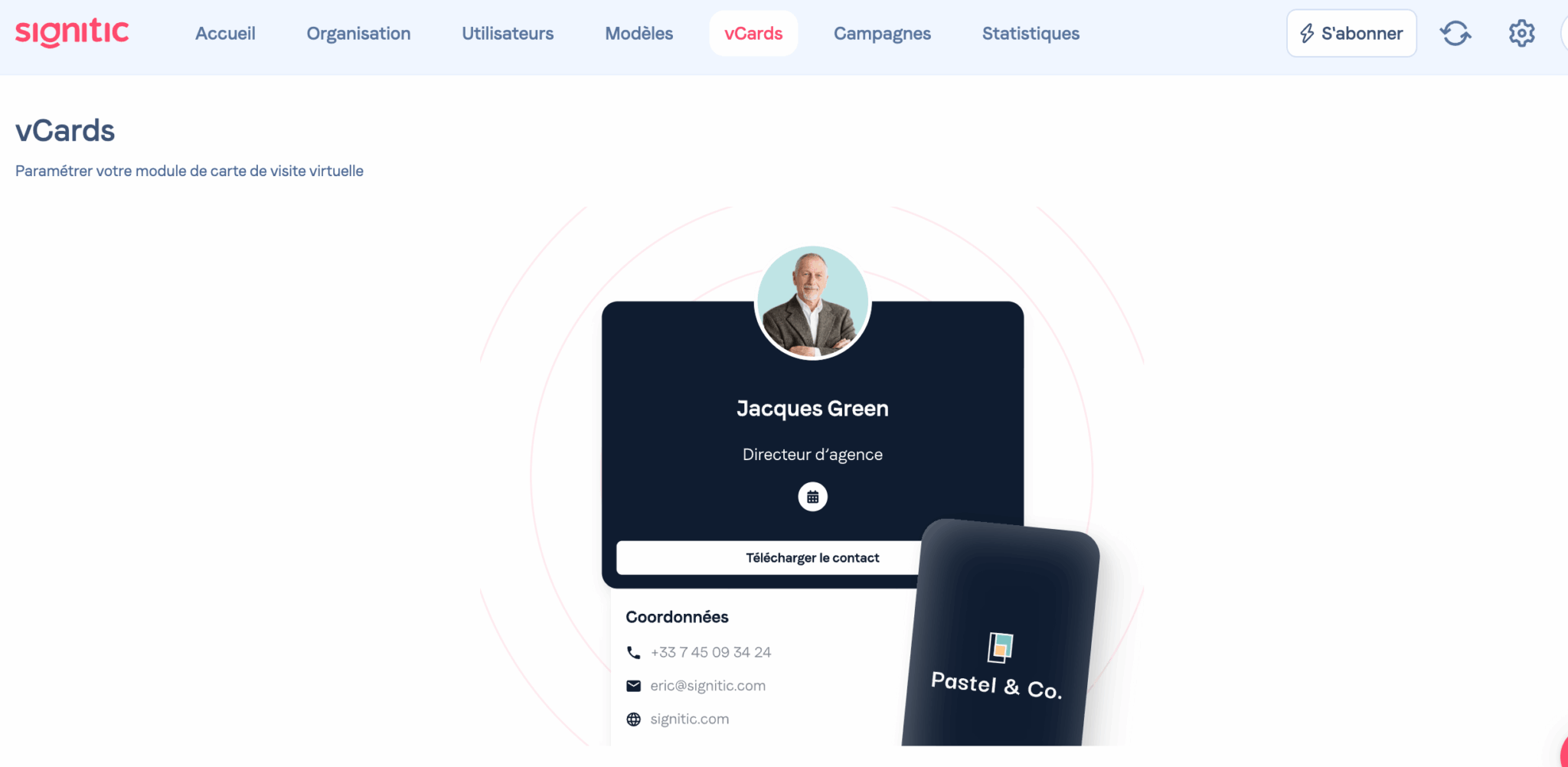 Signitic also generates digital business cards (vCard) with QR code. The recipient scans the code from the signature and adds the contact directly to his or her phone.