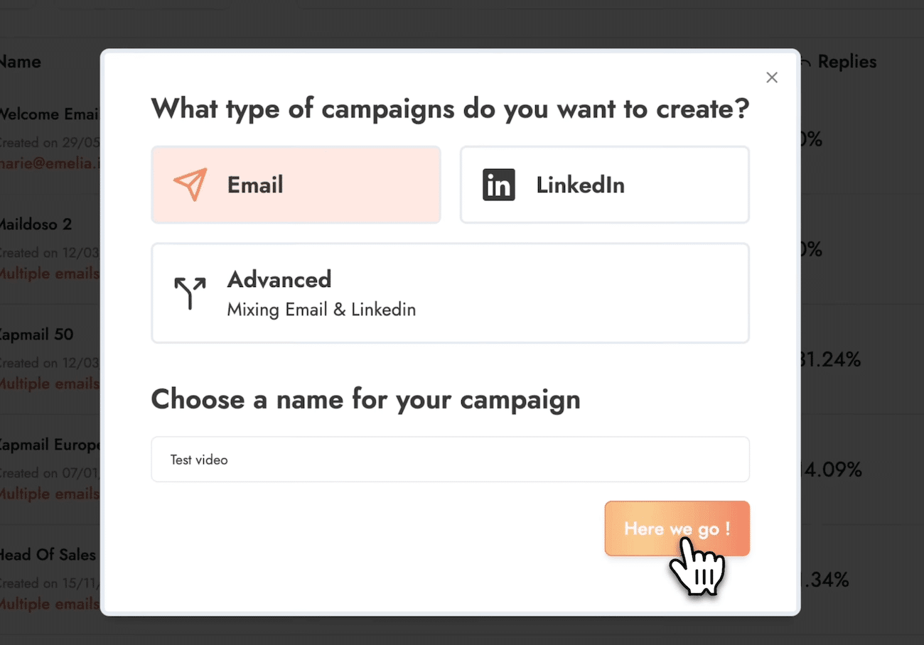 Emelia permet de créer des séquences de prospection multicanales (Email, LinkedIn ou Email + LinkedIn). L’objectif n’est pas de construire des workflows très avancés mais de vous permettre de lancer rapidement des campagnes multicanales qui fonctionnent. Vous pouvez combiner dans une même séquence des emails, des relances automatiques et des messages LinkedIn, le tout dans une interface fluide.