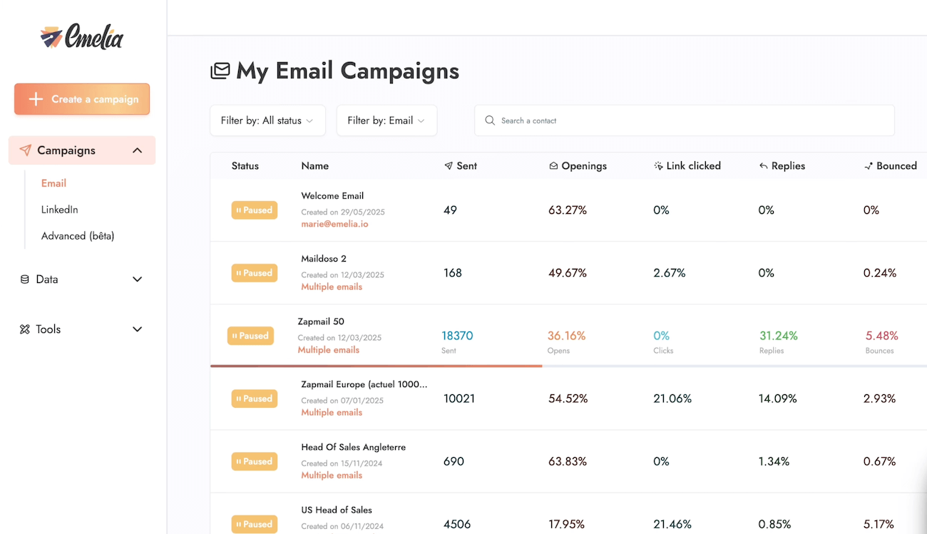 - Une interface claire, fluide et sans jargon. Emelia va droit au but : on comprend rapidement où cliquer, comment créer une campagne et comment suivre les résultats. C’est un produit pensé pour des commerciaux, pas pour des ingénieurs.