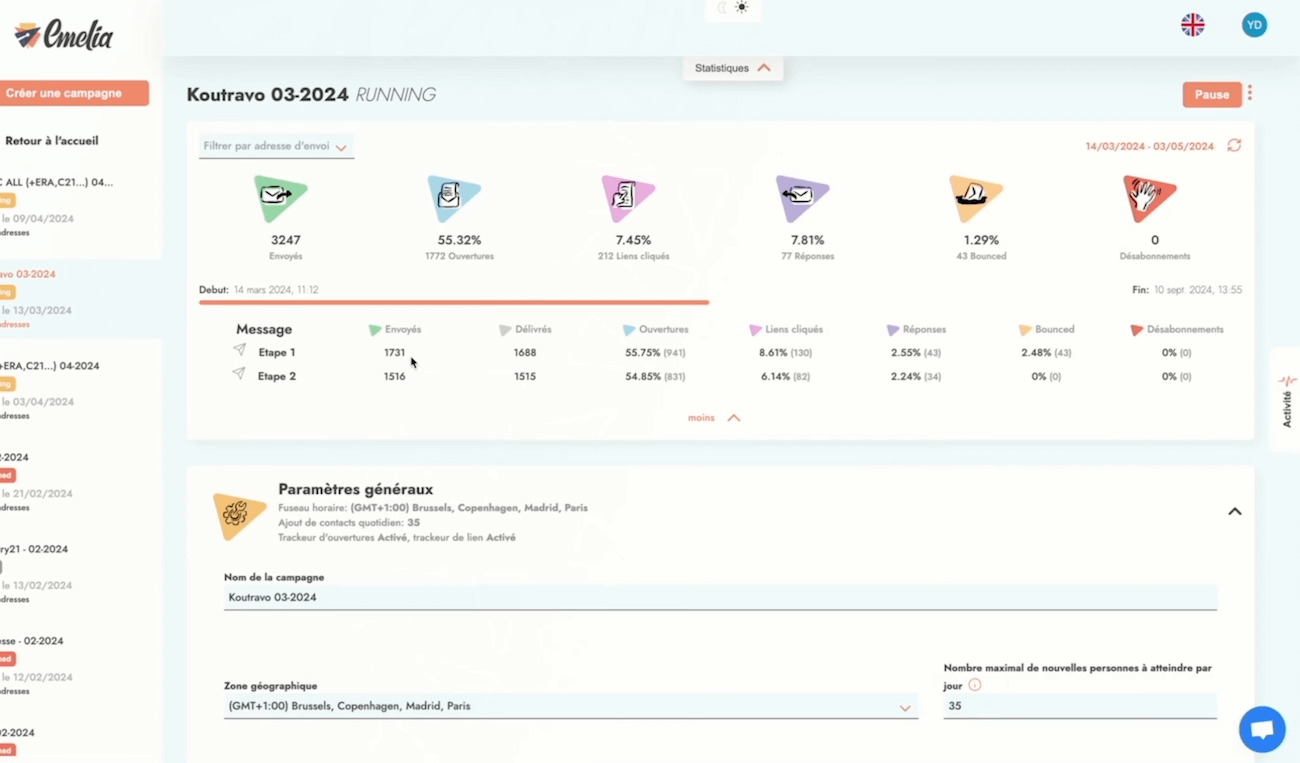 - Un reporting encore perfectible. Vous suivez les ouvertures, les clics et les réponses, mais sans analyse approfondie. Pour les structures qui veulent piloter précisément la performance commerciale,